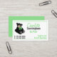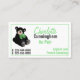 Whimsical Au Pair business card, with graphics of a black teddy bear, with a big green bow, on the top. The back of the card is done in solid green. Personalise the custom text to suit your needs.