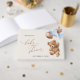 Add a personal touch to your baby shower celebration with these stylish and memorable party items! Design features teddy bear with blue balloons on beige background.