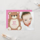 Announce the new baby with this teddy bear birth announcement with a photo. The soft pink is perfect for a baby girl on the way!