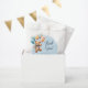 This cute teddy bear themed baby shower favour bag is perfect for thank you gifts for your guests. At the heart of the design is a cute teddy bear holding coloured balloons on a light blue background. Personalise with a short thank you message.