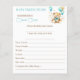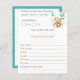 Cute fluffy teddy bear with a bow bearly wait aqua blue gold brown with balloons gold sprinkles baby shower baby predictions and advice card