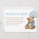 Teddy bear baby shower bearly wait cute teddy bear with balloons book request enclosure cards., teddy in a jacket and pants with bunch of balloons and clouds blue and brown muted colours books for baby cards, baby shower books for baby cards