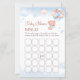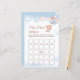 A sweet baby shower bingo game card featuring an adorable teddy bear holding soft blue and blush balloons with dreamy cloud and star accents. The gentle watercolor design adds a charming touch to your party activities while coordinating beautifully with matching teddy bear shower decor. Perfect for a boy baby shower, pastel celebration, or bear-themed party game table.