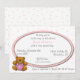 Sweet pastel baby shower invitation. With graphic artwork of a pastel pink on white polka dot pattern as a background and a pink rimmed white oval text area, in the middle. Cute cartoon teddy bear, in the lower left corner, finishes off this baby shower invitation sure to please the mum to be. Customise the text to suit your party needs.