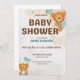 Featuring a cozy neutral color palette and a sweet teddy bear illustration, this design is perfect for baby boys, baby girls, or gender-neutral celebrations.