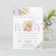 Celebrate the upcoming arrival of your little one with this adorable teddy bear baby shower invitation. Featuring soft pastel colours, floral accents, and a sweet bear holding a balloon, this elegant design sets the perfect tone for a joyful gathering. The mix of cursive and serif fonts adds charm and warmth, making it ideal for honouring parents-to-be. Perfect for baby girl showers, this customisable invitation ensures your event feels personal, stylish, and memorable.