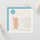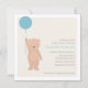 A baby shower invitation featuring a teddy bear floating away in a balloon.