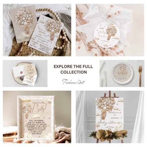 Step into a whimsical hot air balloon adventure with our traveller bear! 🌟 Amidst soft neutral tones and shimmering gold glitter stars, a charming baby teddy gracefully floats in an elegant beige and gold balloon. 🐻🎈 With minimalist design and heartwarming typography, 💖 this teddy bear design elegant thank you card is perfect for your baby shower celebration!