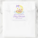 Watercolor Teddy Bear on the moon and clouds with purple bow Baby Shower Bookplate Labels.