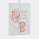 Adorable Baby's 1st Christmas ornament featuring a teddy bear holding a bunch of pink & brown balloons. Room on the back of the ornament to add your baby photo.