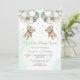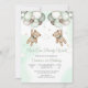 Celebrate your little ones special milestone with this adorable teddy bear balloon first birthday invitation. Featuring two cute bears floating among pastel clouds and stars, this whimsical design sets the perfect tone for a joyful celebration. The soft mint background and playful details create a charming keepsake for family and friends. Personalise easily with your party details and make your childs big day unforgettable.
