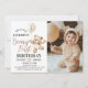 Celebrate your little one’s big milestone with our Teddy Bear Balloon Birthday Photo Invitation! Featuring an adorable teddy bear floating with balloon, this design adds a sweet and whimsical touch to your baby’s special day. Showcase your favourite photo of the birthday boy, making this invite a keepsake-worthy memory for family and friends. Personalise it with your child’s name and party details to set the tone for a beary unforgettable first birthday celebration!