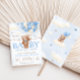 Celebrate the impending arrival of your little boy with our Teddy Bear Baby Shower Invitation! This adorable invitation features a bear holding blue balloons, floating in the sky amongst the clouds and stars. The blue watercolor sky background adds a dreamy touch to the design.