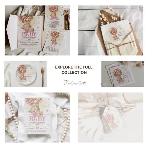 Introducing TsikonArt's adorable Teddy Bear Baby Shower Collection, featuring the sweetest bear soaring high with cute hot air balloons! This collection boasts an irresistibly cute design that's perfect for celebrating the impending arrival of a little one. Our attention to detail and unique artistry truly set this collection apart, just like all our other offerings. At TsikonArt we take pride in creating exclusive designs that make your special moments even more memorable. Welcome the new addition in style with our one-of-a-kind baby shower collection!