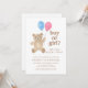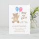 This charming gender reveal invitation is decorated with a watercolor teddy bear and blue and pink balloons. It says "We can bearly wait" in simple typography and is easily customisable.
