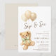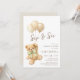 This adorable brown teddy bear with soft champagne beige balloons creates an elegant baby shower design. Warm neutral earth tones and a delicate sage green bow give it a unique boho chic look.