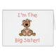 An adorable brown bear in a pink dress and hair bow and pink text that reads "I'm the Big Sister!" is featured on big sister Tshirts, mugs, tote bags, cards, magnets, buttons, stickers, and other items that you can customise with names or other text on the spot!
