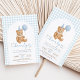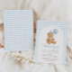 Get ready to shower the parents-to-be with love using this adorable "We Can Bearly Wait" baby shower invitation! Featuring a sweet hand-painted teddy bear holding a blue balloon, this design is perfect for celebrating the upcoming arrival of a little bundle of joy. The soft blue gingham background and vintage-inspired arch layout add a timeless, cosy charm to your event.