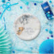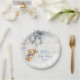 This adorable baby shower paper plate features a sweet watercolor teddy bear with soft blue balloons and fluffy clouds, creating a charming and joyful design for a baby boy celebration. The gentle blue tones and cute teddy bear artwork bring a warm storybook style that fits perfectly with a teddy bear themed baby shower.