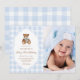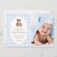 Teddy Bear Blue Minimalist Boy Birthday Photo Invitation