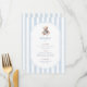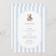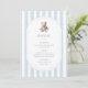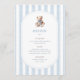 Grandmillennial Teddy Bear Birthday Menu, featuring classic blue watercolor stripes and a vintage teddy bear
