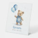 Teddy Bear Boy Baby Shower Favors Pedestal Sign
