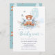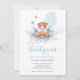 Step into a world of adorable charm with our "Teddy Bear Boy Baby Shower Invitation," a design that captures the essence of childhood sweetness and the joy of welcoming a new life. At the heart of this design, a winsome watercolor teddy bear takes centre stage, clutching three blue balloons behind his back with an air of playful secrecy. It's an endearing scene that embodies the joy and wonder of welcoming a precious baby boy into the world. Beneath the bear's paws, a bed of delicate blue flowers unfolds like a tranquil meadow. Each bloom is a testament to the beauty of nature and the gentle, nurturing love that surrounds the impending arrival of a precious baby boy. The colour palette is a gentle blend of soft blues and earthy browns, creating an atmosphere of serenity and tranquillity. These hues set the stage for a celebration filled with love and the promise of new beginnings. As you behold the "Teddy Bear Boy Baby Shower Invitation," you're transported to a world where the ordinary is transformed into the extraordinary, and every moment is a reminder of the blessings of family. It promises a gathering filled with laughter, heartfelt conversations, and the joyful anticipation of a precious little one. This invitation that captures the essence of a cherished moment, where the love of family and the wonder of childhood meet in a celebration that will be treasured for a lifetime. Most lettering is editable - click the "Customise Further" button to edit. Matching items available.