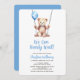 Celebrate the upcoming arrival of a little bundle of joy with our charming "We Can Bearly Wait" baby shower invitation! The design features an adorable watercolor teddy bear gently swaying on a wooden swing, and holding a blue balloon. Join the mum-to-be for a day filled with love, joy, and cherished moments. Use the design tools to customise the text and the fonts. Also available as digital download for invite.