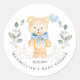Teddy Bear Boy Greenery Foliage Baby Shower Classic Round Sticker