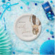 Add a personal touch to your baby shower celebration with these stylish and memorable party items! Design features teddy bear in brown hot air balloon on beige background.