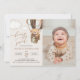 Invite friends and family in style and set the tone for your special day with this charming birthday invitation. Design features teddy bear in brown hot air balloon on beige background.