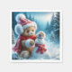 Teddy Bear Building a Snowman Napkin