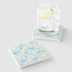 The coasters are gorgeous, a quality feel and heavy weight. They look like a precious archeological find. A rustic stone juxtaposed with a modern floral black and white print. I like the way the print goes slightly imperfect on the cut stone edges giving them a kind-of natural beauty.