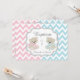 Cute twins girl and boy teddy bears with crosses and pink and blue chevron print baptism invitation card.