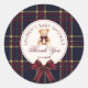 Teddy Bear Christmas Bow Plaid Thank you Classic Round Sticker