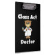 A cute doctor design clipboard any medical doctor is sure to love, features a teddy bear doctor with lab coat and stethoscope and white text that reads Class Act Doctor on a black background.