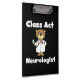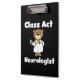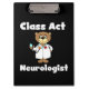 A cute neurologist design clipboard any neurologist is sure to love, features a teddy bear doctor with lab coat and stethoscope and white text that reads Class Act Neurologist on a black background.