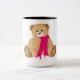 The teddy bear is designed with a classic, rounded shape that emphasizes its cuddliness. It has a soft, plush appearance, with a rounded head, chubby cheeks, and a plump body.