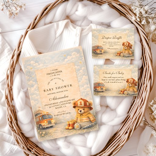 Teddy Bear Firefighter Baby Shower Invitation