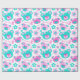 Fun pastel shades pink and aqua teal blue green teddy bear faces and graphic flowers repeat pattern birthday wrapping paper, perfect for a girls 2nd Birthday. Personalise with your own birthday girls name and single digit age, currently reads Rachel. Graphic uniquely designed by Sarah Trett.