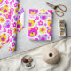 Bright bold shades of pink, yellow, purple and white, teddy bear faces and graphic flowers repeat pattern birthday wrapping paper. Perfect for a girls 8th Birthday. Personalise with your own birthday girls name and single digit age, currently reads Sofia 8. Graphic uniquely designed by Sarah Trett.