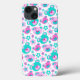 Pastel pink and aqua teddy bear faces and graphic flowers repeat pattern kids ipad case perfect for girls. Art and design by Sarah Trett.