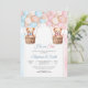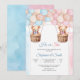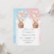 Celebrate your special moment with this adorable teddy bear gender reveal invitation featuring watercolor balloons in pink and blue. Perfect for announcing "He or She,- this charming design includes playful bears in wicker baskets with bow ties, making it ideal for baby showers and reveal parties. Personalise with your event details to create a keepsake guests will love. A delightful choice for parents-to-be who want a stylish and memorable way to share their exciting news.