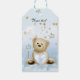 Cute Teddy Bear holding a heart on blue cloud with stars.