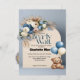 A baby shower invitation titled "We Can Beary Wait" featuring a teddy bear and a blue balloon for a baby boy. Explore coordinating items in the Teddy Bear Baby Shower Theme collection.