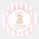 Teddy Bear Girls Pink Bow Stripes 1st Birthday Classic Round Sticker