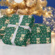 Green wrapping paper with Christmas bears on it