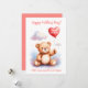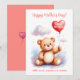 Celebrate a special bond with this sweet and whimsical Mother's Day greeting. This design features a cuddly hand-painted teddy bear holding a vibrant red heart balloon amidst soft watercolor clouds and stars. It is the perfect keepsakes for a mother to receive from her young son and daughter.