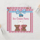 A cute way to have friends over for an ice cream party! Featuring teddy bears, a milkshake,a sundae, and a sweet ice cream truck charm attached to a blue bow and ribbon with polka dots against a white and pink striped glitter like background. Some design elements by kristi w designs @ digi web studio.