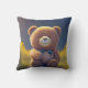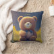This cute Thrwo Pillow features a cuddly teddy bear in the middle of a meadow of flowers against the evening sky. Brown bear, yellow flowers, blue sky. Wonderful, custom gift for baby shower, kids birthday and more! My idea, generated with AI.